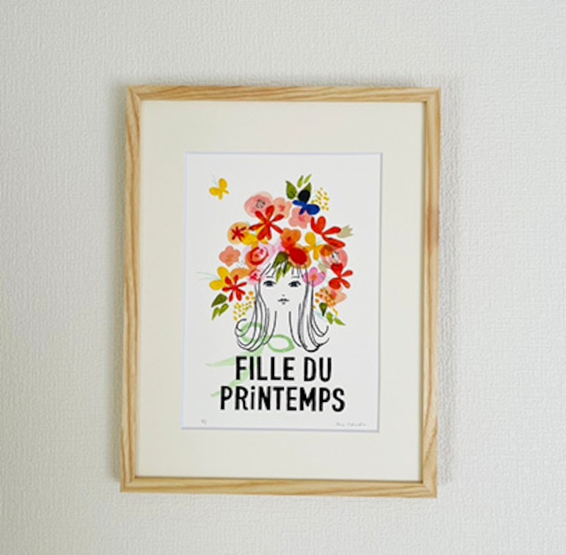 額装オリジナルプリント「 fille du printemps(春の女の子)」 size:304×394mm 厚さ22mm (額のサイズ=太子サイズ、用紙=A4サイズです) material :ジークレープリント 用紙:竹尾かきた 額:無塗装の天然木材、UV加工アクリル板 5枚限定 ジークレープリントは耐光性に優れたエプソンの10色顔料インクで出力されたもので、鮮やかな美しい色が再現されています。作品左下にエディションNo.、右下に直筆サイン入り。 ・状況によりお届けまでに1週間〜2週間ほどいただいておりますが、お急ぎの方はお問い合 わせごください。 ・シートのみ(¥27000)での販売もお受けいたします。 ご希望の方は画面右下よりメッセージをお願いいたします。