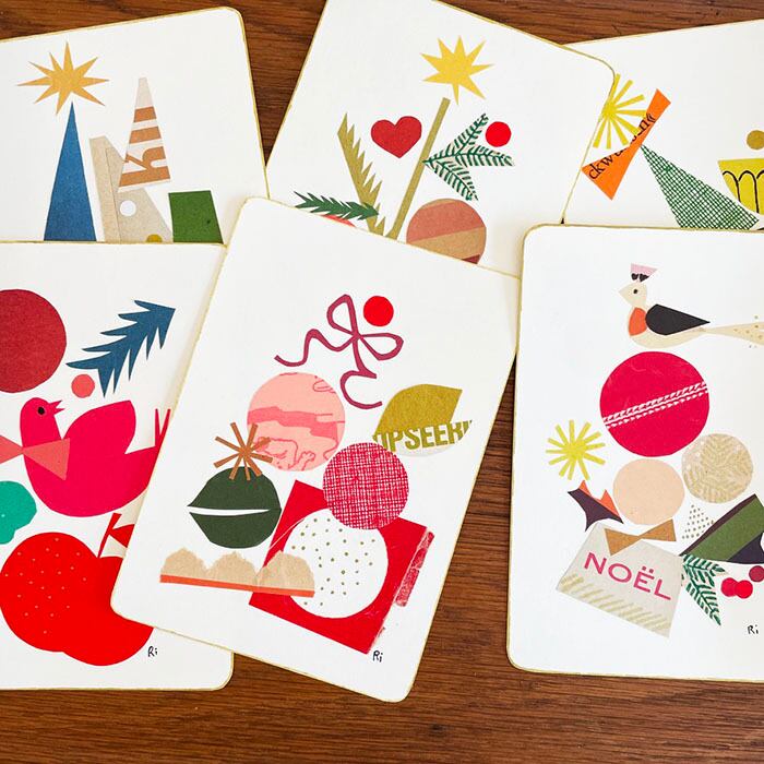 クリスマスのモチーフを外国のヴィンテージ ペーパーや色紙などを使って製作した、小さなオリジナル作品です。作品はすべて、形・色・質感のバランスを丁寧に構成しながら、一点ずつ手作業で仕上げています。