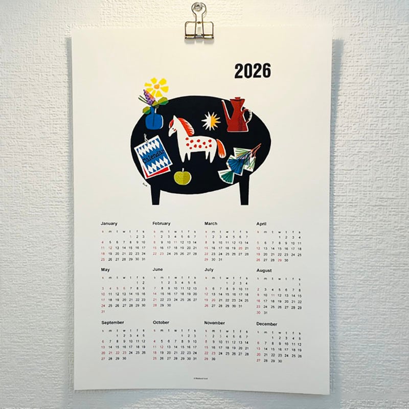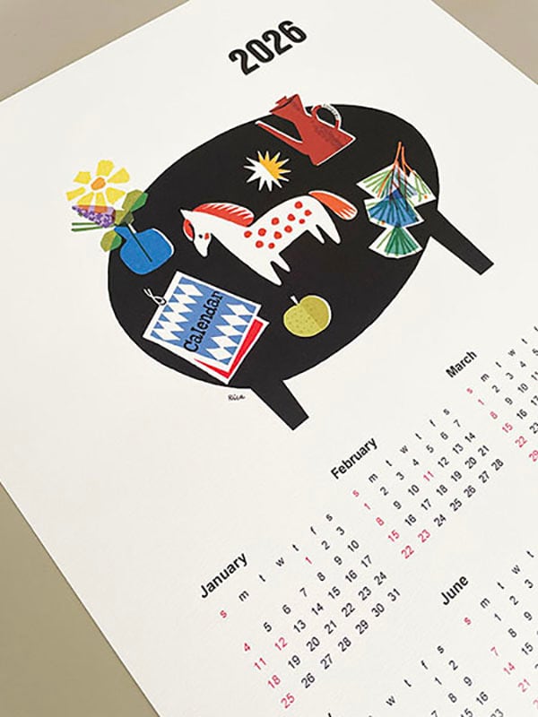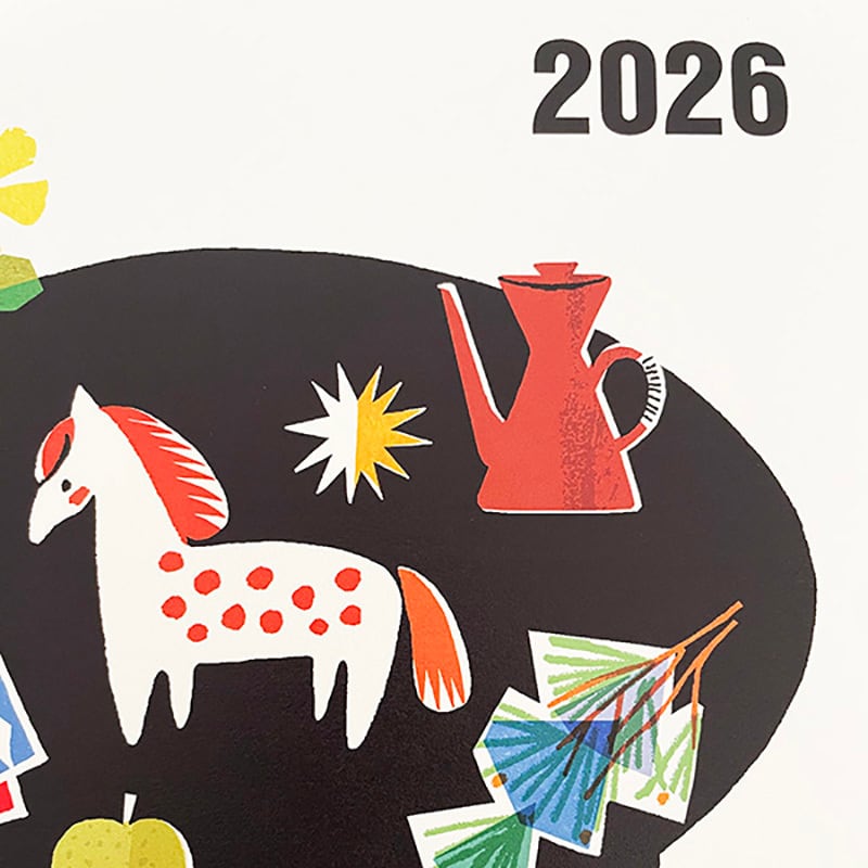 2026年すでに始まっていますが、遅ればせながらA3サイズのポスターカレンダーを作りました。干支の馬に縁起物の松の枝を添えたイラストと、シンプルなデザインで年間通してお楽しみいただけます。